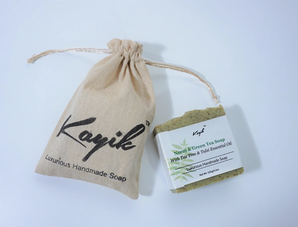 NEEM & GREEN TEA SOAP WITH TEA TREE & TULSI ESSENTIAL OIL